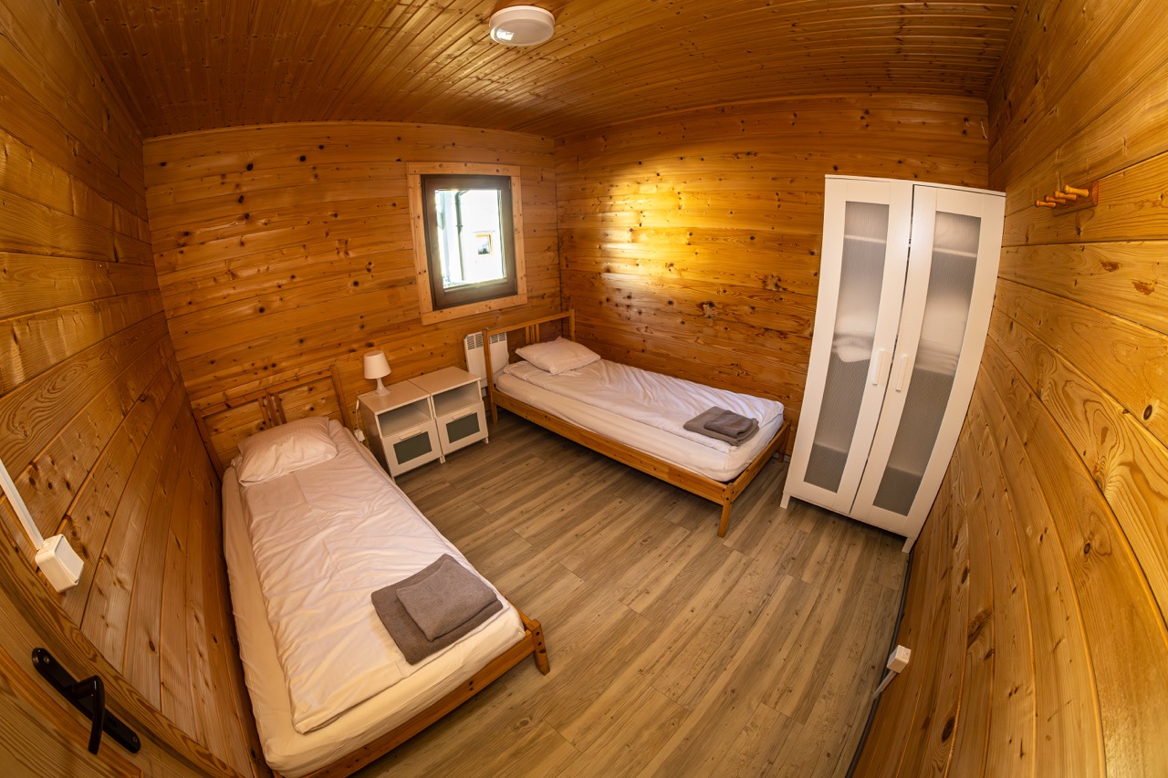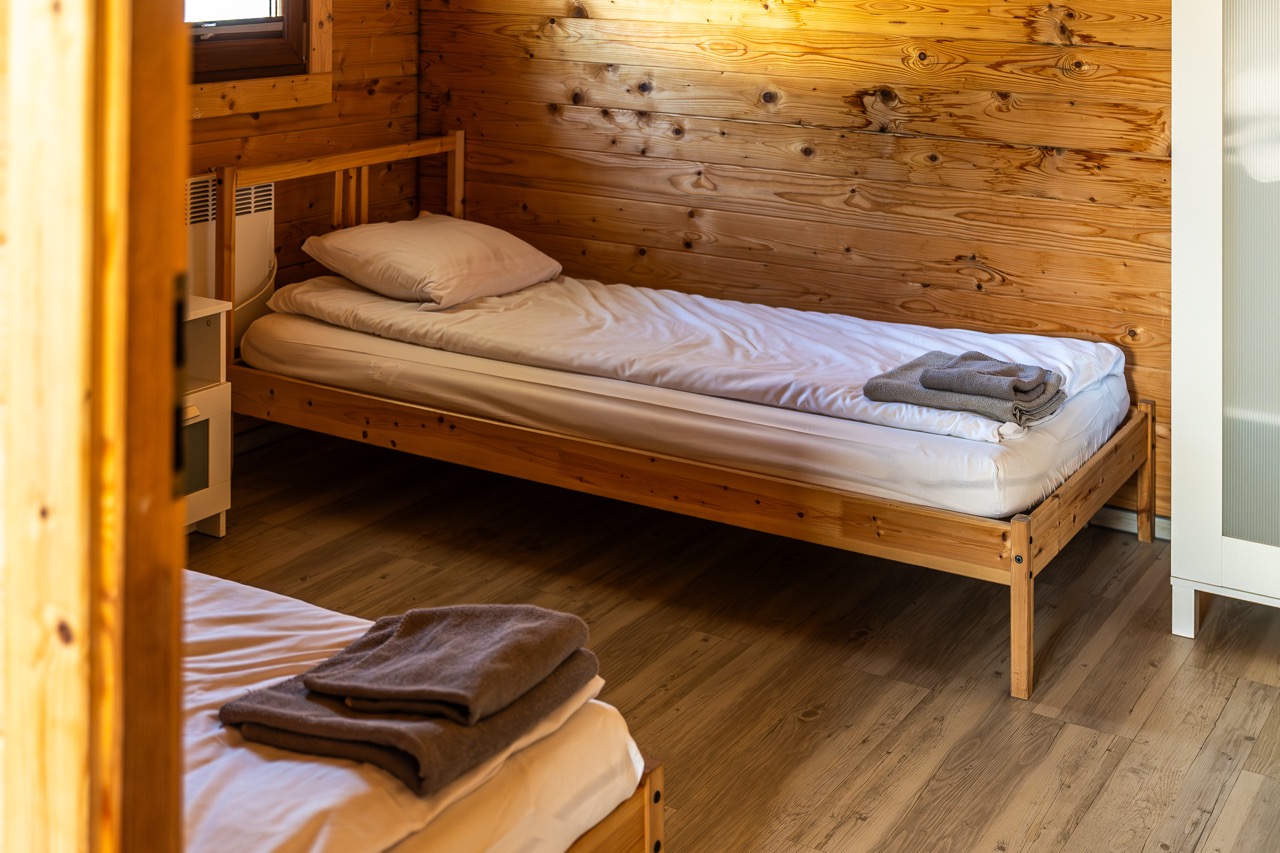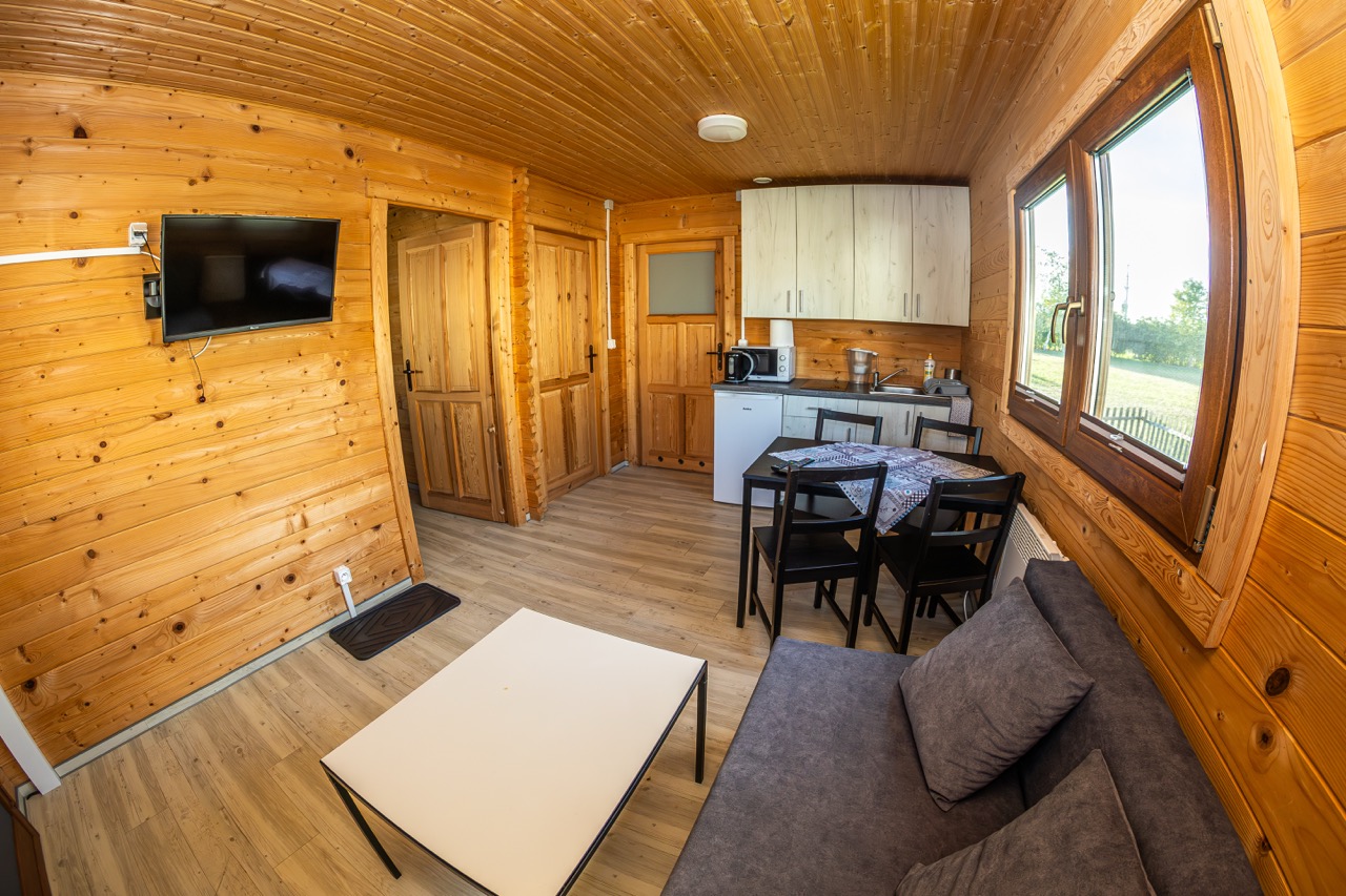 W każdym domku znajduje się przestronny salon z aneksem kuchennym, dwie osobne sypialnie oraz funkcjonalna łazienka. To idealna przestrzeń zarówno dla rodzin, jak i grup przyjaciół.